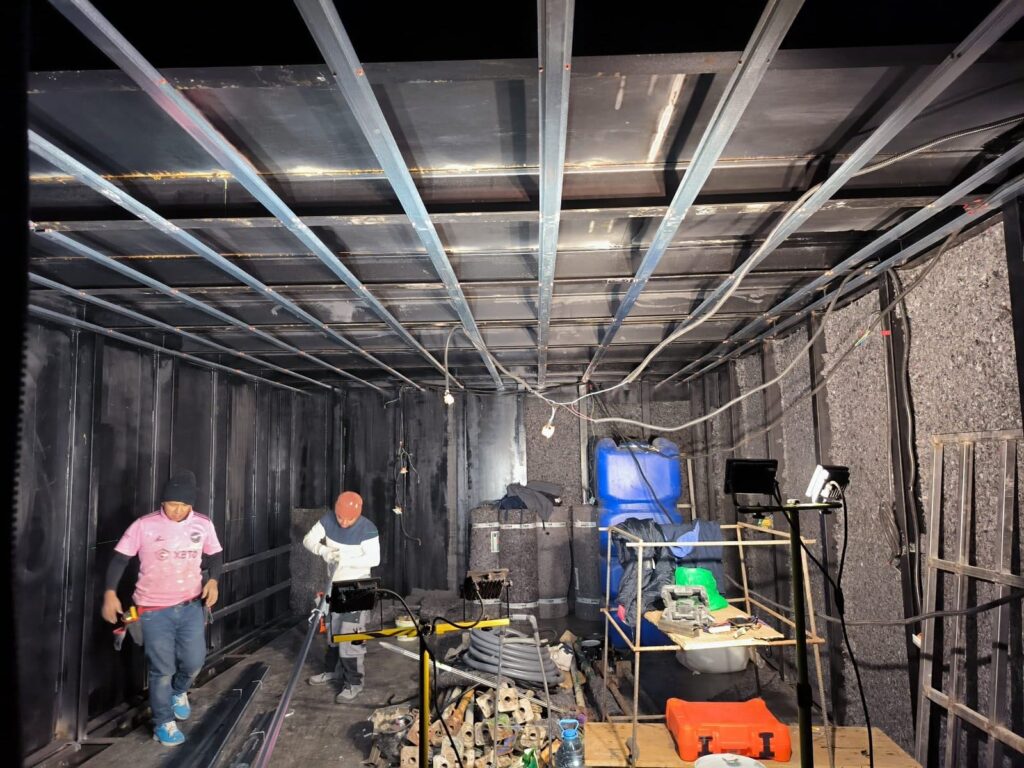 El interior no se queda atrás: acabados que facilitan la limpieza, similares a quirófanos, y opciones personalizables como moqueta o tarima. Aunque el acabado blanco de resina es ideal por su funcionalidad y estética.
